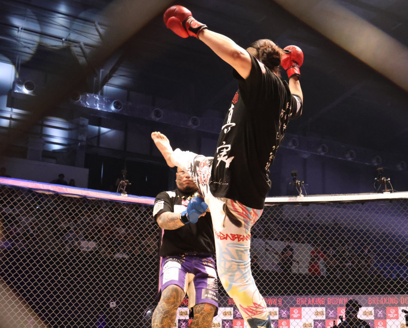 これが奥野が空振りした前蹴り。これでケガを負ったという