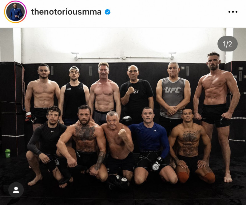 カンヌでファイトキャンプを張るマクレガー(下列左から2番目) 今月末、キャンプで練習するマクレガー @thenotoriousmma