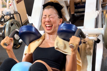 “ビキニ女王”安井友梨が、鬼気迫る表情でスクワットに取り組んだ(本人のブログより)
