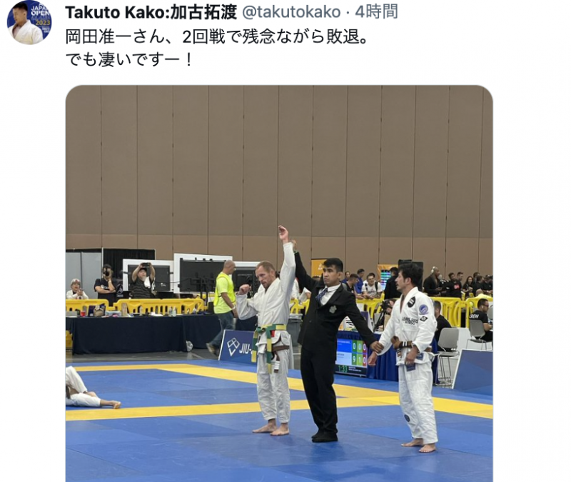 準々決勝で敗退した岡田(加古拓渡@takutokako のXより)