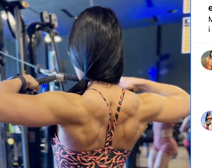 大きく盛り上がる僧帽筋や広背筋 @eva_andressaより