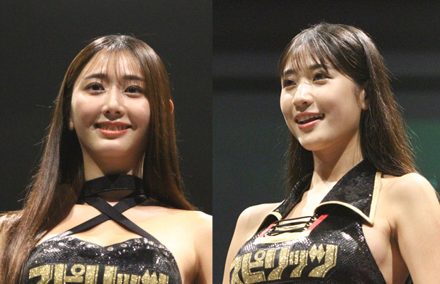 スピリッツガールの斎藤恭代(左)と岡本杷奈(右)が初ラウンドガール