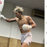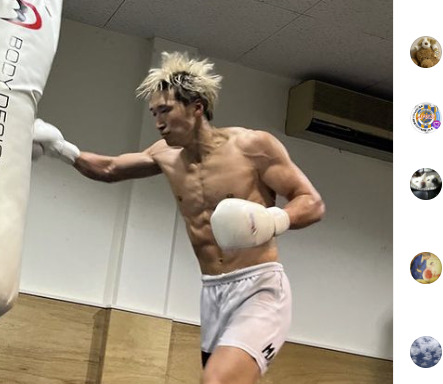 サンドバックを打つ安保、かなり仕上がっているように見える(@anporukiyaより)