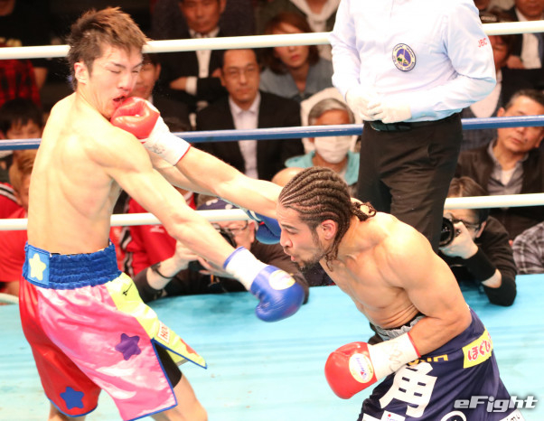 日本王者として防衛戦に臨む細川バレンタイン(右)=19年