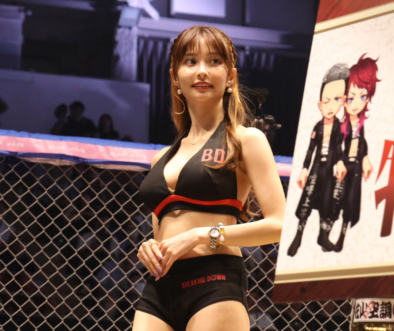 身長151cmと小柄ながらグラマーボディでラウンドガールを務めた花咲れあ
