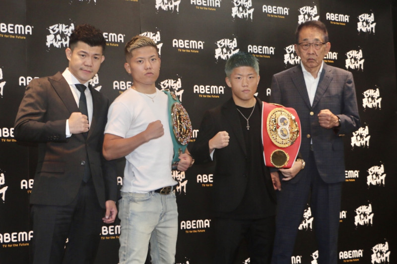 左から亀田興毅、兄・優大、銀次朗、渡辺会長
