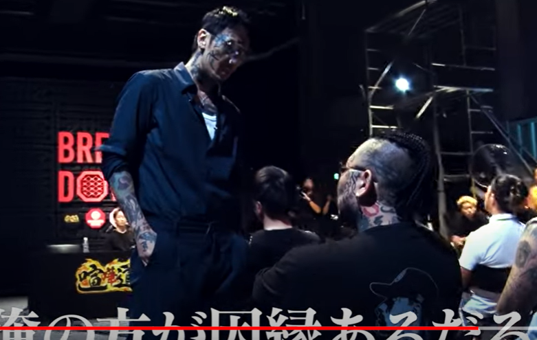 別角度から。瓜田がタイソンの前に立つ(『朝倉未来』YouTubeチャンネル)