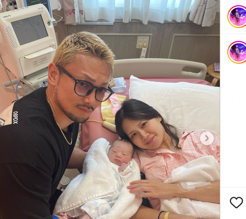 誕生したばかりの長男と愛鷹夫妻(@aitakaryo.gより)