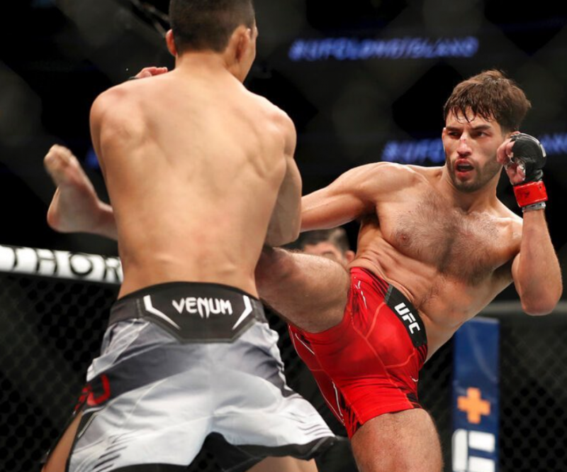 蹴りを放つシュネル(右)©️UFC