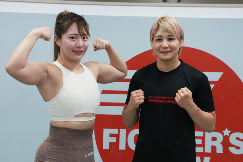 ちゃんよた(左)が次戦へ向け渡辺華奈(右)と公開特訓を行った