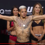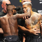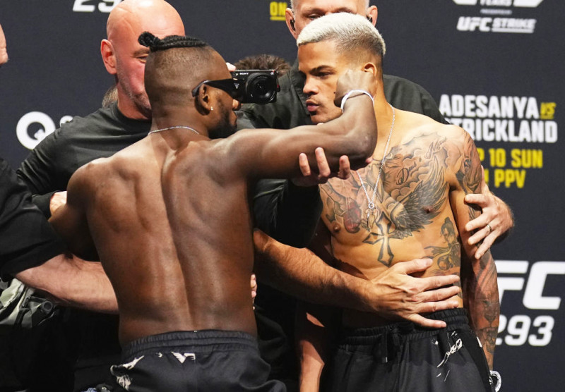 相手のドス・サントス(右)とバチバチのフェイスオフを演じるケイプ(右)©️UFC