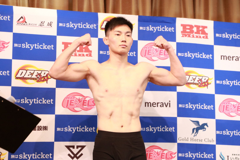 上田直毅、計量パスでマッスルポーズ