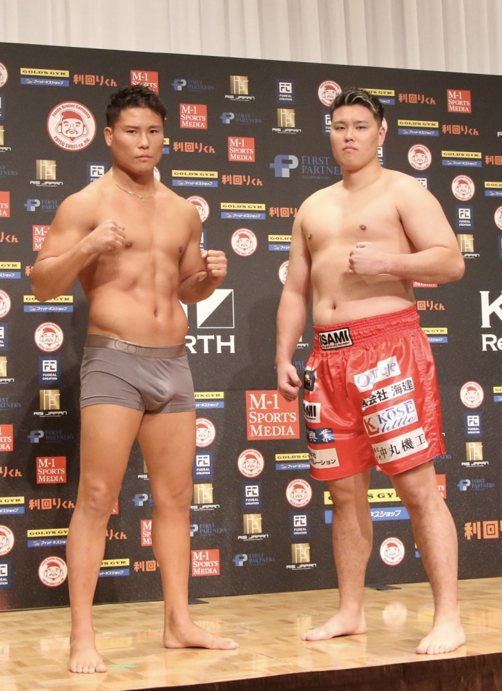 K-Jee(左)は92.05kg、上田幹雄(右)は111.15kgで約20kgの体重差