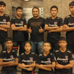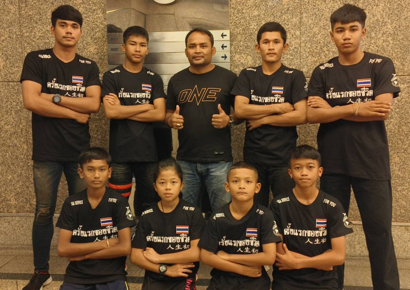 “チーム・デーダムロン”8人のムエタイ戦士とデーダムロン(後列中央)
