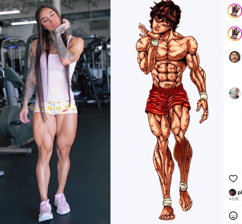 女性版バキと話題に!バキバキの太ももはそっくり@bakharnabieva