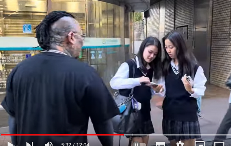 JKから記念撮影を頼まれる所沢のタイソン(『所沢のタイソン』YouTubeチャンネル)