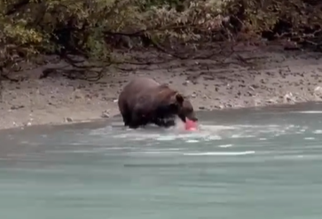 熊がベニザケを捕獲する姿が(本人のインスタグラムより)