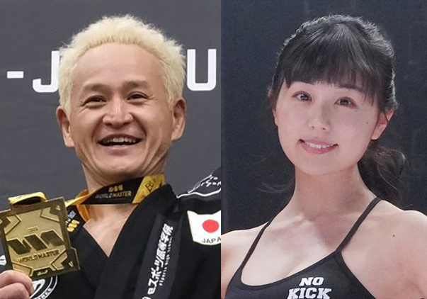 柔術国際大会で優勝したガリチュウ福島(左)、質問したくりえみ(右)