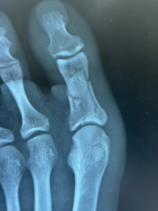 安井の左足親指のレントゲン写真(『安井友梨オフィシャルブログ』)