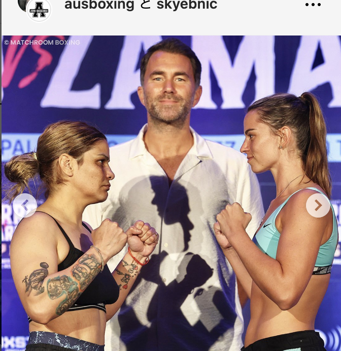 ニコルソン(右)と暫定王者ペレス(左)が、スポーツビキニでマッスルポーズ(@skyebnicより)