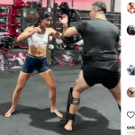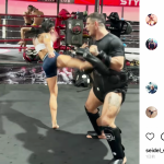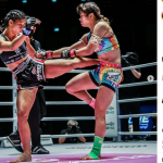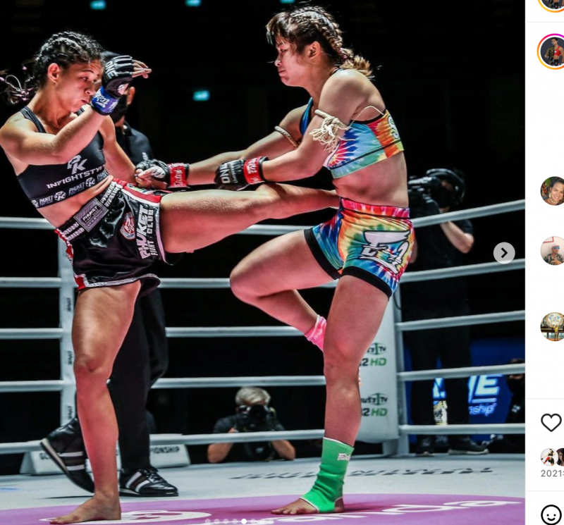 スタンプにミドルをヒットさせるアリシア@allycia_phuketfightclubより