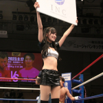 友野ゆみ(左)、平瀬ひかり(右)がラウンドガールとして上がった