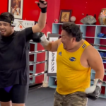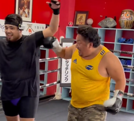 ノッコンは、笑顔の但馬にボディブローで攻め続けた(@koupulu)
