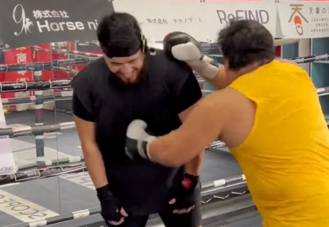 但馬ミツロにボディブローを放つノッコン(@koupulu)