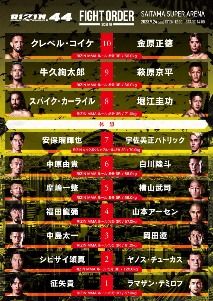 『RIZIN.44』新しい試合順©️RIZIN FF