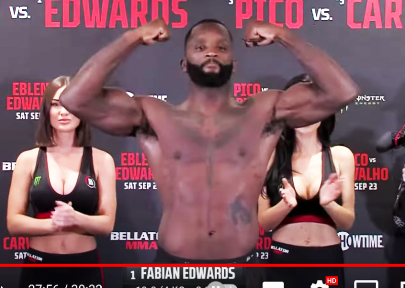 エドワーズがマッスルポーズ(Bellator公式YouTubeより)
