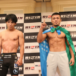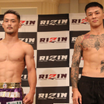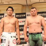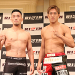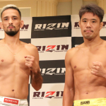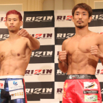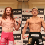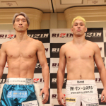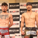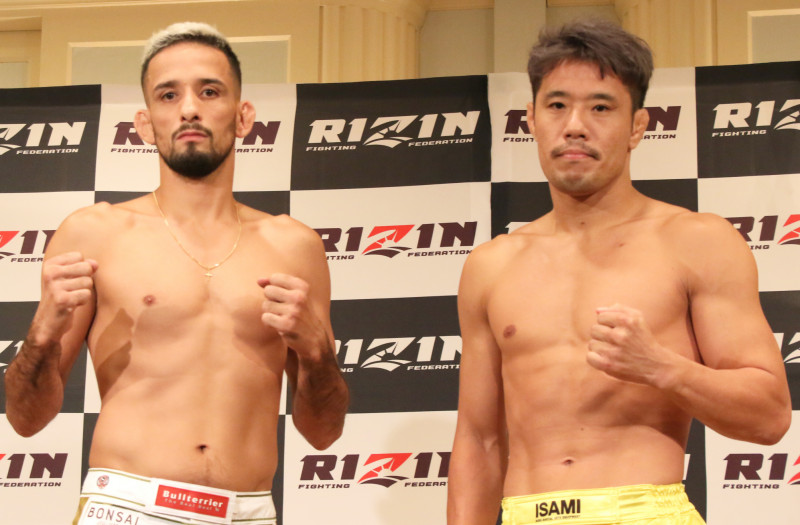 クレベル・コイケ(左)と金原正徳(右)が計量パス