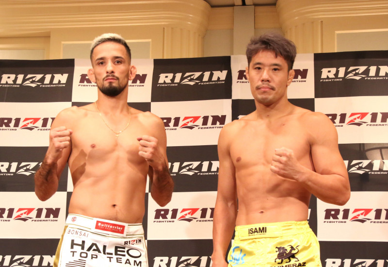 クレベル・コイケ(左)と金原正徳(右)が計量パス、極上のMMAが見られそうだ