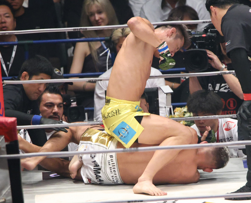 クレベルに対しマウントからパンチを落とす金原