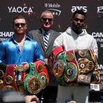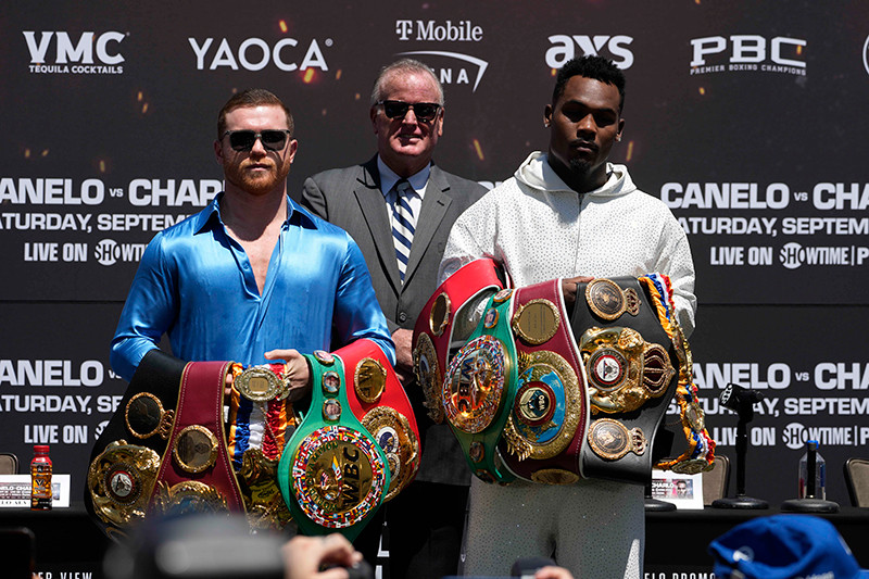 カネロ(左)vsチャーロ(右)男子史上初の現4団体統一王者同士が対戦する(AP/アフロ)