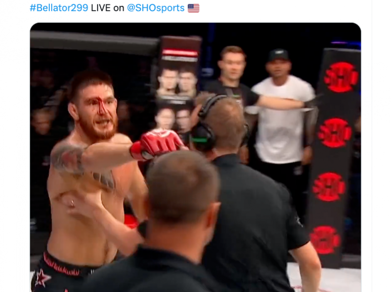 指差しながら罵声を上げるエブレン@BellatorMMAより