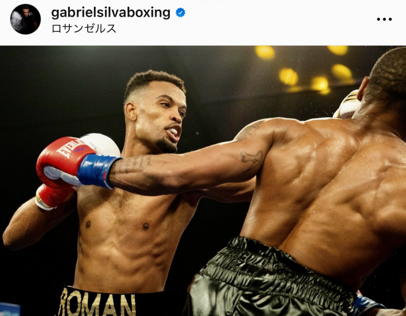 父譲りの鋭いパンチを打つガブリエル(左)=今年4月