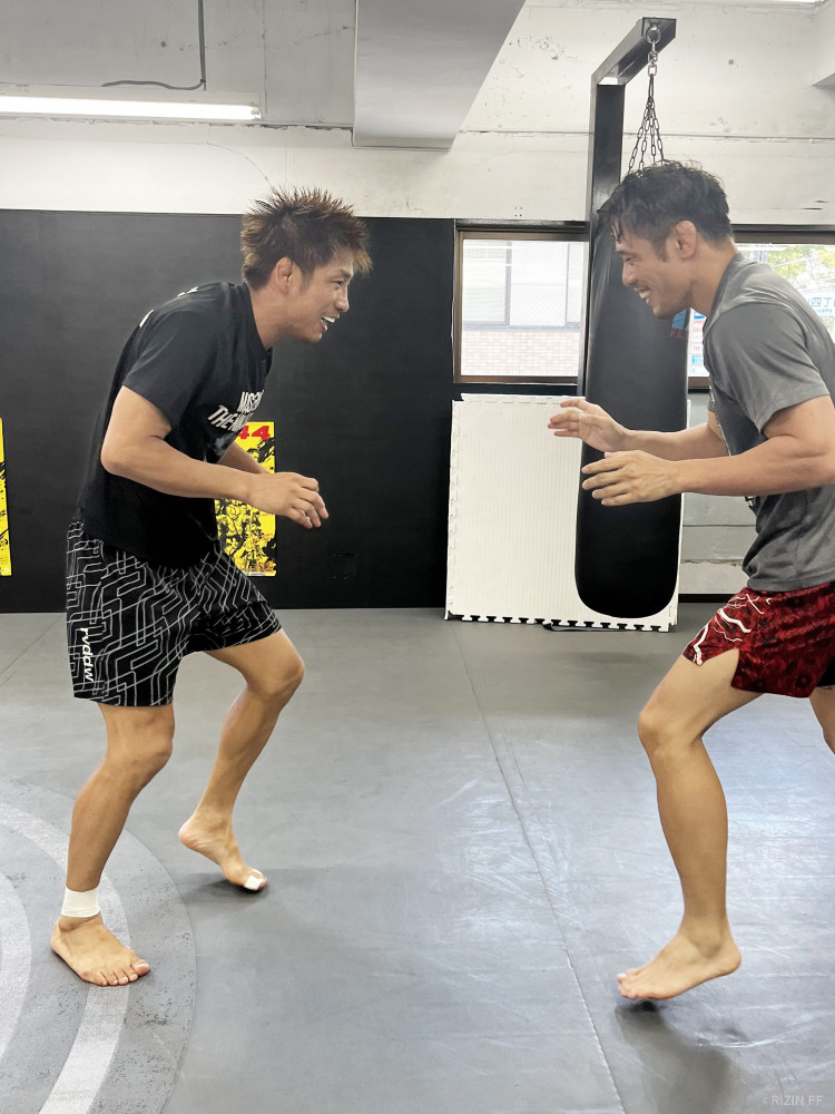 ヤマニハ戦に向け、金原(右)と公開練習する所(今月12日)