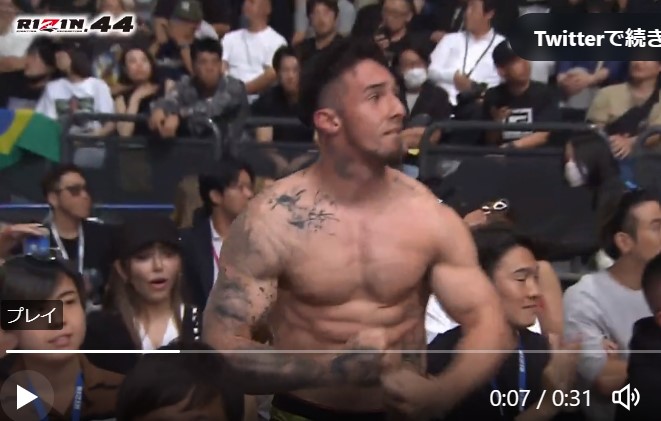 突如Tシャツを脱ぐとムキムキボディでマッスルポーズ!(RIZIN FF EnglishのXより)