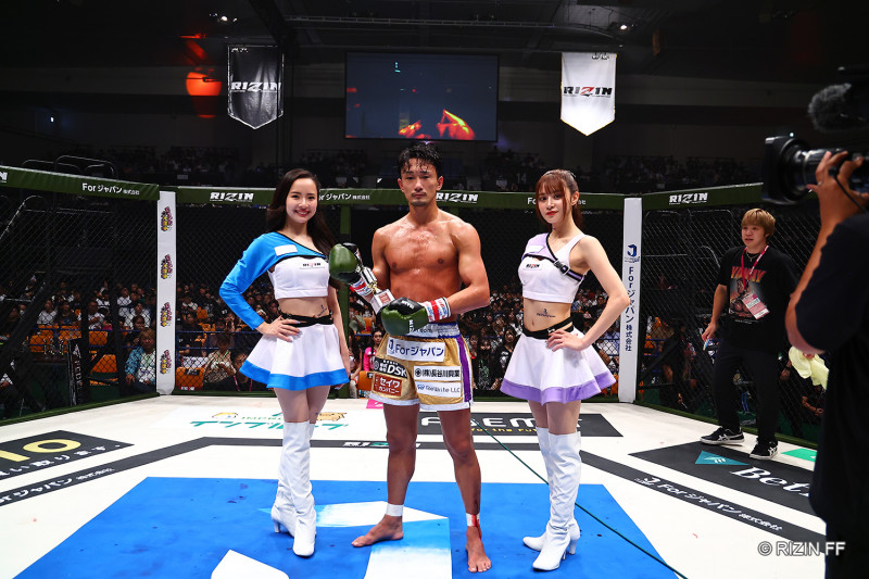梅野源治と並ぶKOU(右)、大鷹りか(左)