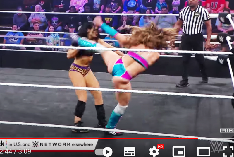 ルレダの旋風脚が炸裂!(WWE公式YouTubeチャンネル)