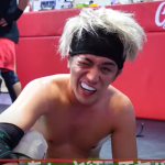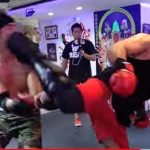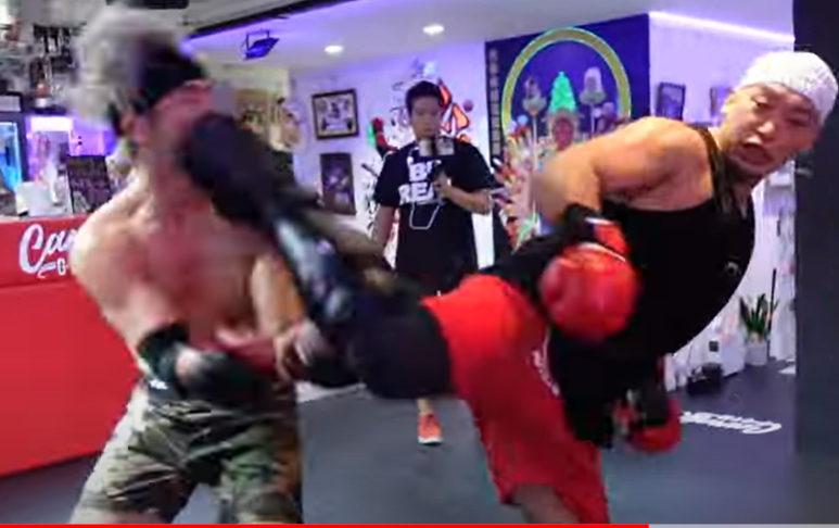 スパーリングで後ろ回し蹴りを右目にもらって負傷するジョリー(『安保瑠輝也チャンネル』)