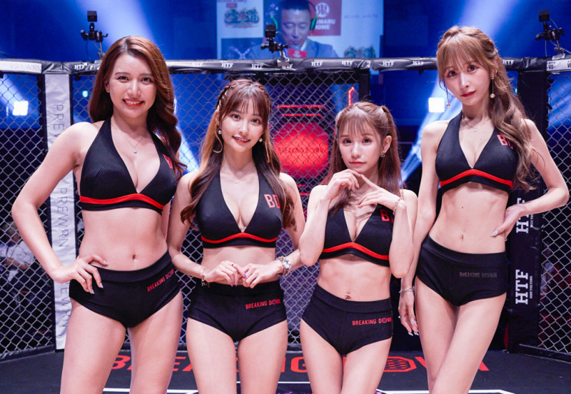 ブレイキングダウンのラウンドガール。左から、さゆり、花咲れあ、平瀬あいり、浦西ひかる