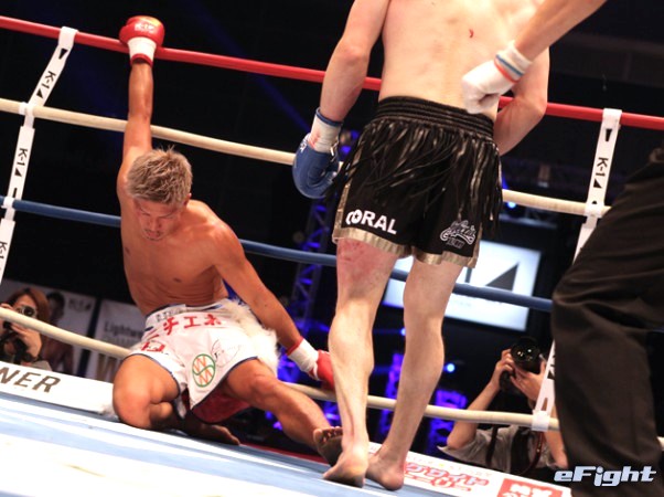木村のパンチで計3度のダウンを喫した敗北した城戸(2017年)
