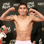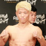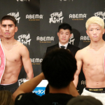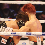 頭から突っ込むバラダレス、1度目は重岡がギリギリかわす(今年1月の対戦)