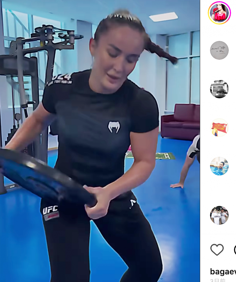 ダンベルプレートで高重量な筋トレを行うアヴサラゴワ@pantera_57