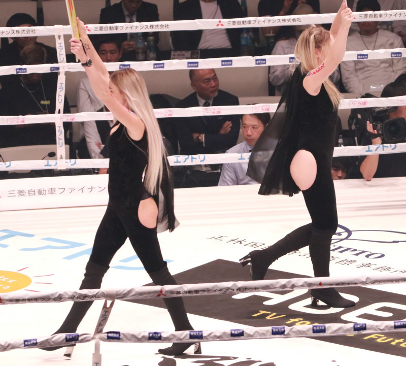 外国人ラウンドガールのウォーキング