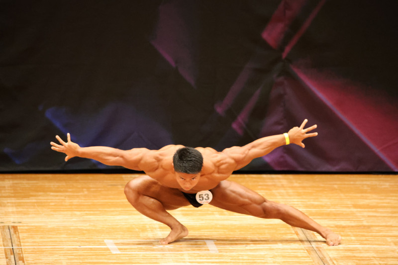 相澤はフリーポーズで、まるで刃牙の範馬勇次郎のポーズから様々な筋肉をアピールするポージングをを見せた
