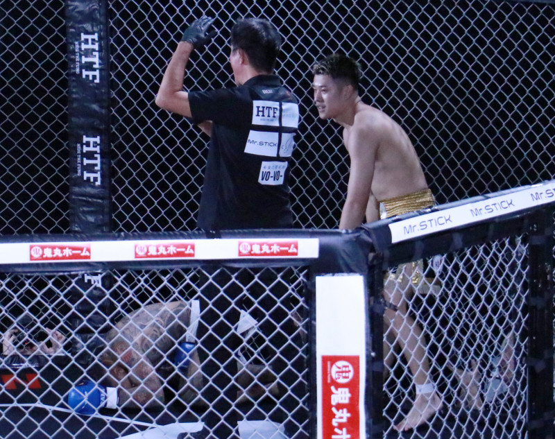 尾田が悶絶ダウン