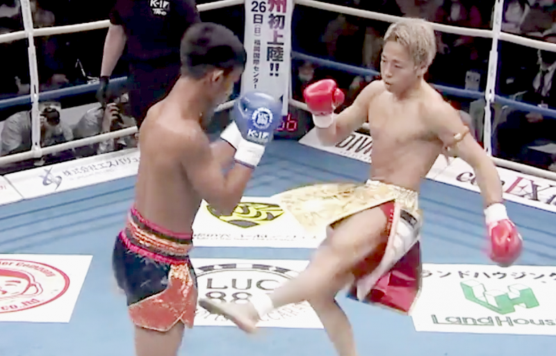 武尊が素早いインローを放つ(c)AbemaTV(20年3月ペッダム・ペットギャットペット戦)