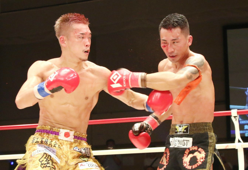 出血しながらも打ち合うバズーカ(左)と良太郎
